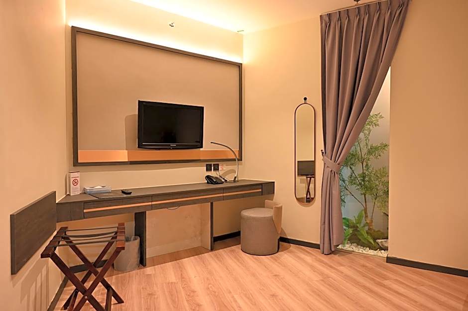 This larger air-conditioned deluxe king room opens up to city views. The room is fitted with a flat-screen satellite TV, mini-bar and a desk. The private bathroom includes shower facilities, a hairdryer and free toiletries.